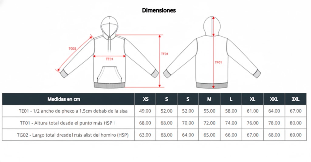 Disponible desde la talla XS hasta 3XL